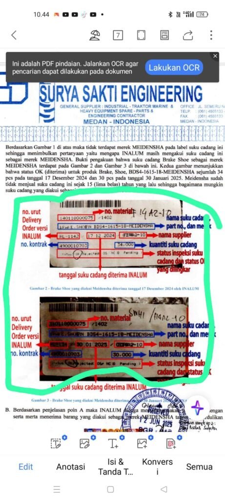 “Hal ini pun sudah dijelaskan dalam surat PT SSE. Surat penjelasan Satuma Jepang sebagai OEM Meidensha yang telah diterjemahkan ke bahasa Indonesia mengatakan bahwa barang milik vendor ‘binaan’ tersebut adalah palsu,” ungkapnya.