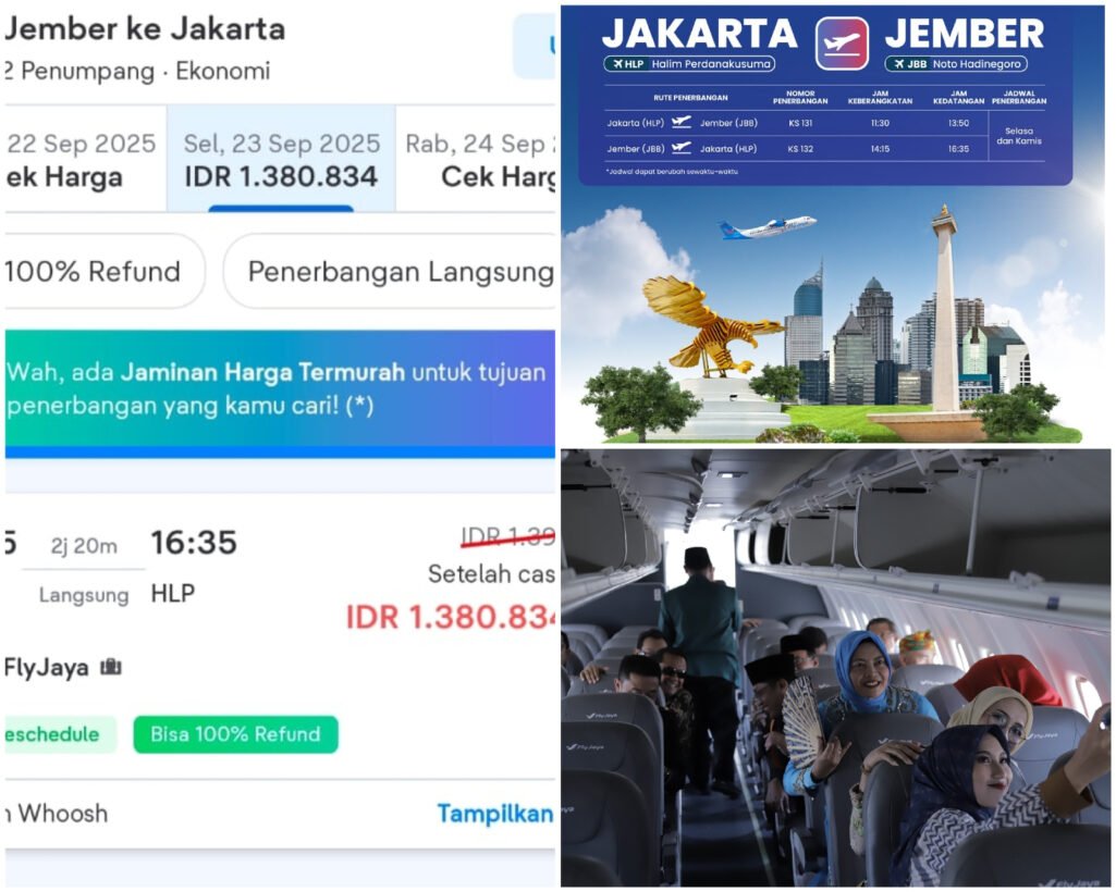 Aktivis-Indonesia.Co.Id | Jember – Jakarta pada 23 September 2025, masyarakat kini sudah dapat membeli tiket resmi maskapai Fly Jaya. Plt Kepala Dinas Perhubungan (Dishub) Kabupaten Jember, Gatot Triyono, menjelaskan bahwa pemesanan tiket dapat dilakukan baik secara offline maupun online.