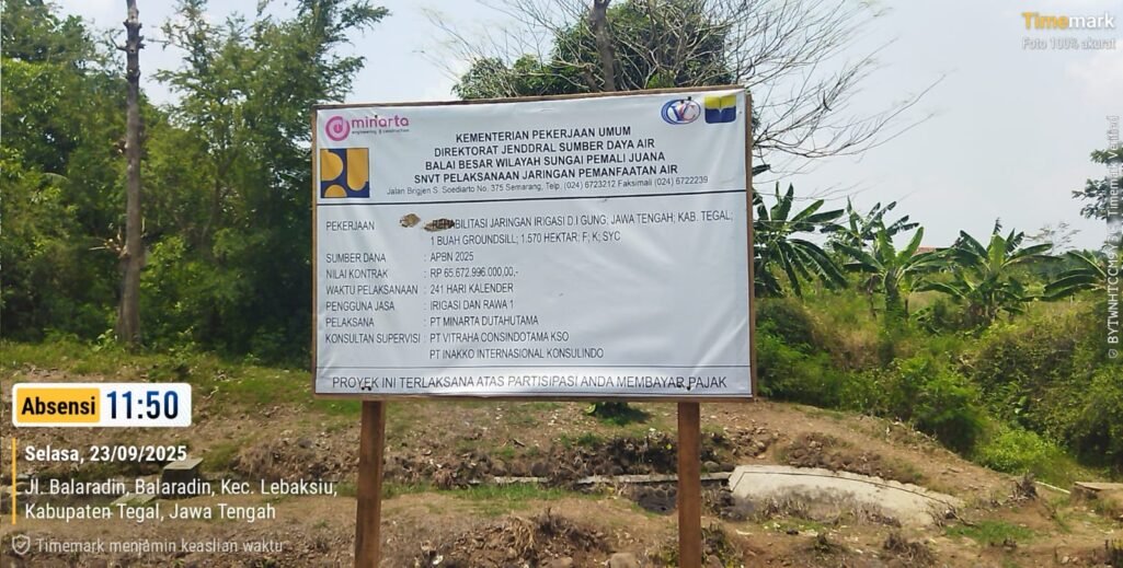 Aktivis-Indonesia.Co.Id. | Tegal Jawa Tengah – Pekerjaan Saluran rehabilitas jaringan irigasi D.I gung Balaradin.(grounsil) PT Minarta Dutahutama Sangat cemaskan petani pasal nya sampai sekarang saluran irigasi belum bisa jalan untuk aliran air. Pada Hari Sabtu 27 September 2025.
